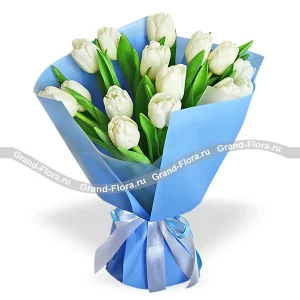 Голубая дымка - букет из белых тюльпанов