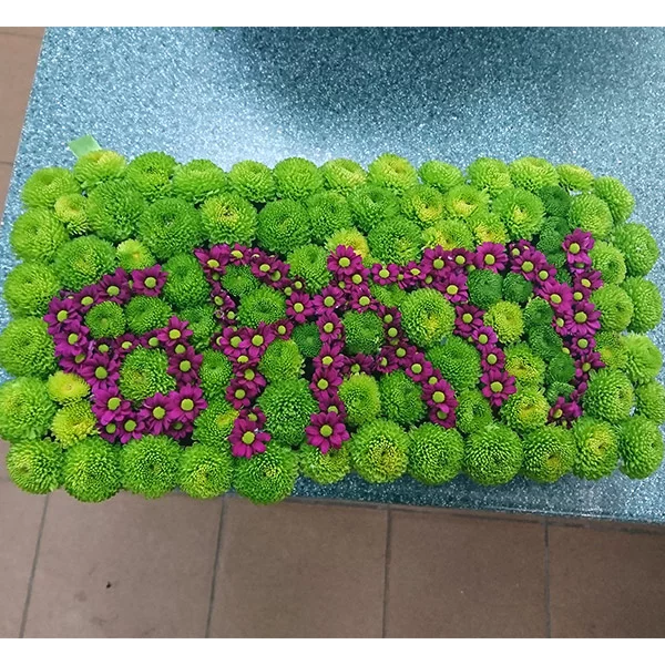 Брату - композиция на оазисе из кустовых хризантем