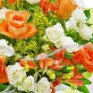 ДЕЛЮКС: роза оранжевая - 11 шт., роза кустовая белая - 6 шт., альстромерия - 5 шт., солидаго - 5 шт., фетр желтый. Примерный размер: 45Х45 см.
