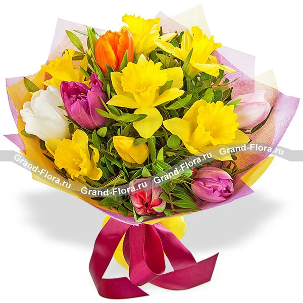 Буйство весны - букет из нарциссов и тюльпанов