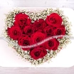 11 роз (на фото): роза красная - 11 шт., гипсофила, оазис сердце малое. Примерный размер: 25Х25 см.