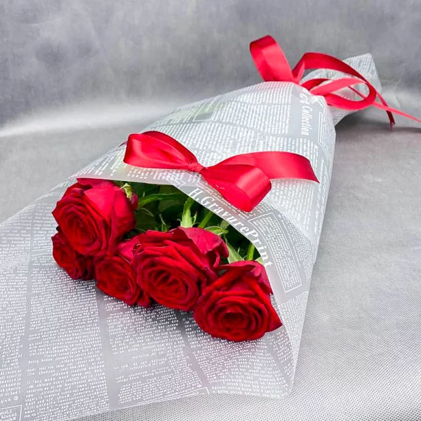 Розы красные 60 см - 5 шт., упаковка.